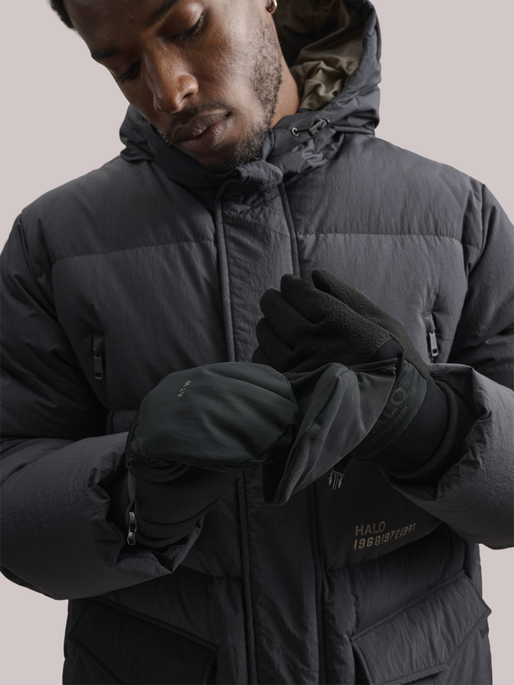 HALO FLEECE GLOVES kombinerer blød fleece med Cordura® stofteknologi, som modvirker gnidning, så du både får optimal komfort og slidstyrke. Disse alsidige handsker har et lag, så de kan konverteres til vanter samt pegefingre til touchskærm. De har refleksprint og en enkel stil.